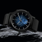 - Design with a Cosmic Touch: A genuine piece of meteorite, the black-blue lacquered dial, a matte black case with Superluminova, and an interchangeable strap make this timepiece truly distinctive.