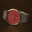 - Iconic Design: Matte red dial, 42.5 mm brushed gold case with an inset crown, and an interchangeable mesh strap—where style meets functionality.