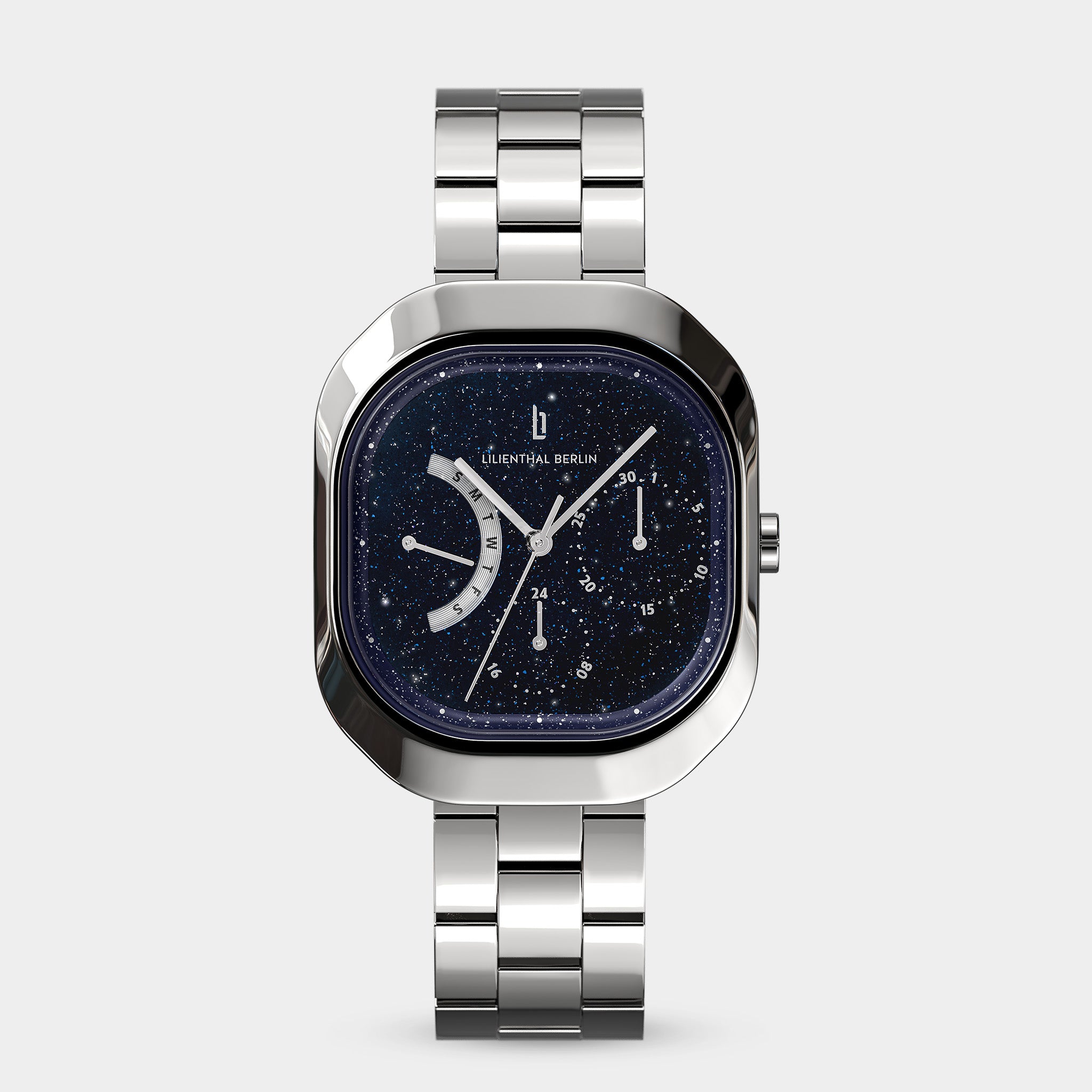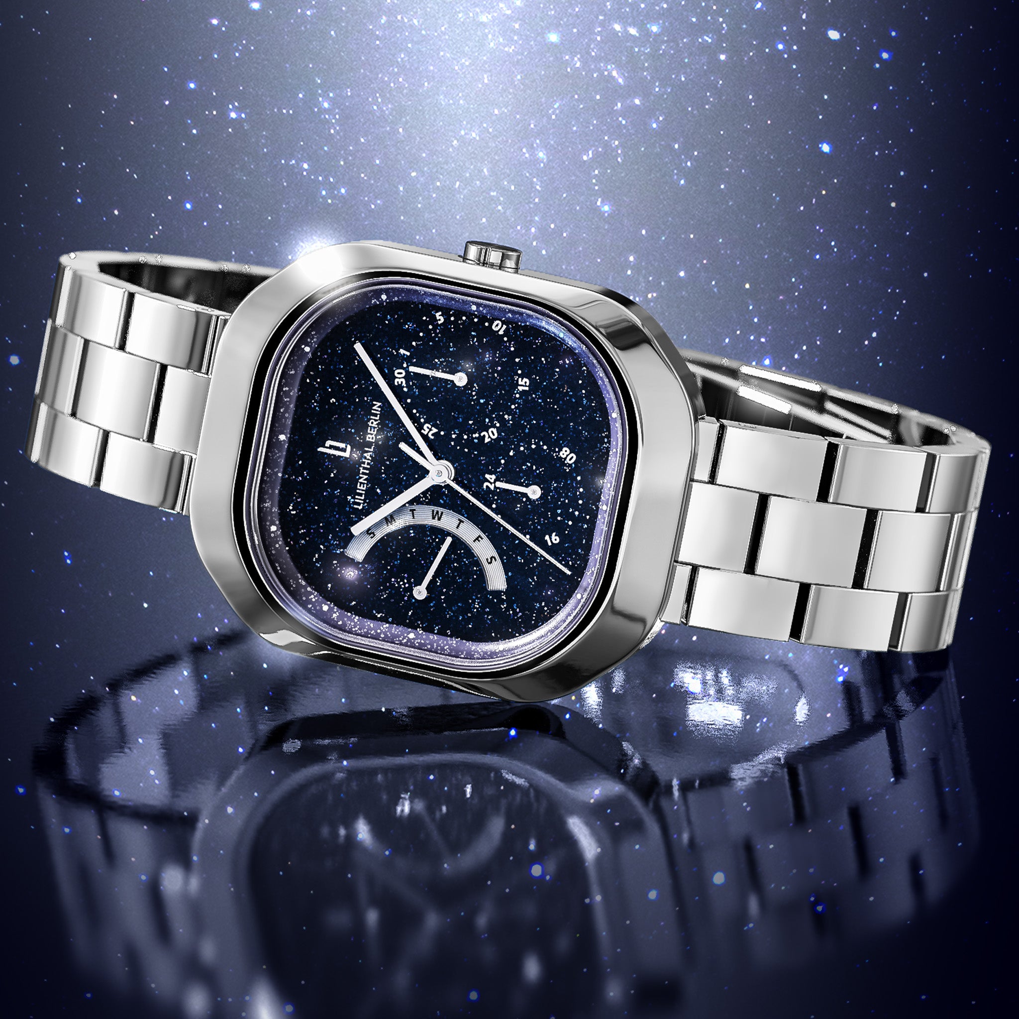 - Sophisticated Brilliance: The dial is coated with a crystalline surface, creating a lively shimmer with every movement. Featuring delicate hands, small Superluminova elements, and displays for date and weekday, it offers subtle complexity while remaining effortlessly readable.