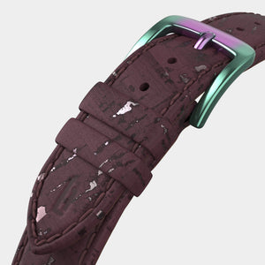 - Vegan paper leather strap, made from cellulose, latex and cork are comfortable, durable, and can be swapped quickly thanks to the quick-release mechanism.