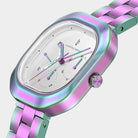 • Sculptural Elegance: A rectangular case with softly rounded edges creates a striking yet refined silhouette, making this timepiece feel like a piece of jewelry on the wrist.