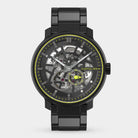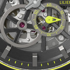 - Precision made visible: The skeletonized dial unveils the complex aesthetics of the automatic movement.