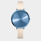 • Heavenly Elegance: The matte-brushed case and sunray dial are both held in a crisp blue, creating a seamless, tone-on-tone aesthetic.