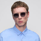 - Wyraziste połączenie materiałów: Szkła z efektem gradientu, podwójnie oprawione w bioacetat i stal nierdzewną, nadają projektowi unikalny charakter. Dzięki elastycznym zausznikom model Fusion Pop w rozmiarze Medium Fit wygodnie dopasowuje się do każdej głowy.