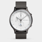 • Funkcjonalny design: Białe, lakierowane tło, ciemnosrebrna obudowa i skórzany pasek ucieleśniają koncentrację, pewność siebie i suwerenność.