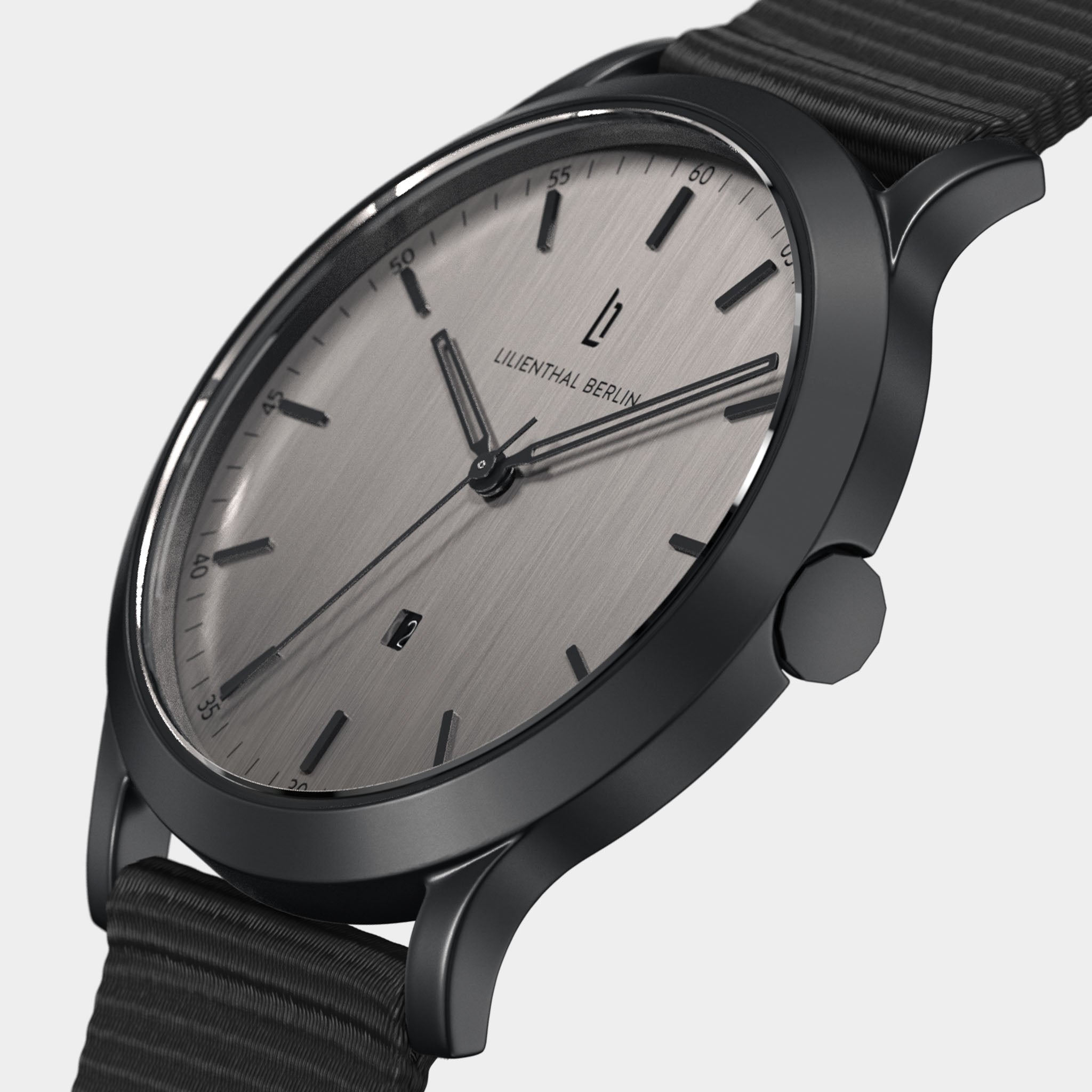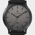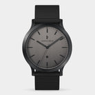 - Suwerenne design: Tarcza w ciemnym szarym kolorze, wskazówki i naniesione indeksy w matowej czerni, koperta i wymienny pasek w tej samej barwie: Huxley Shadow urzeka ciemnymi, spokojnymi tonami.