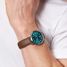 - Potężne oświadczenie: Niebiesko-zielony cyferblat w błyszczącej kopercie 40 mm nadaje wyrafinowanemu i eleganckiemu wyglądowi nowoczesny akcent – odpowiednie na każdą okazję.