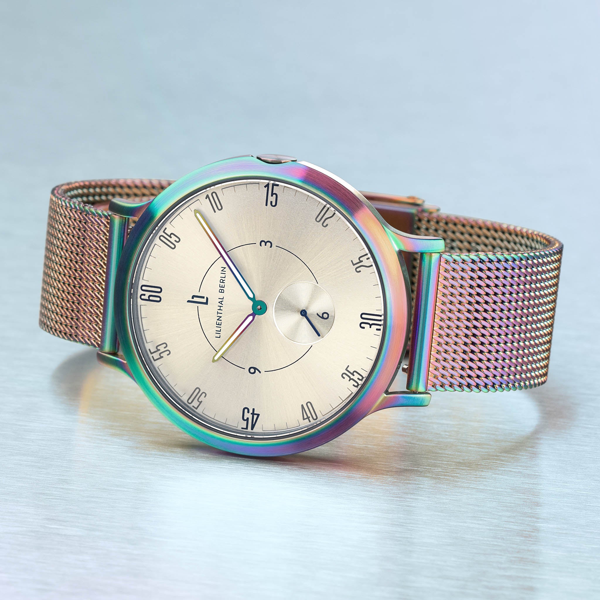 - Indywidualne oświadczenie: Kolorowy gradient różni się w zależności od modelu – każda zegarek jest więc wyjątkowym egzemplarzem.
