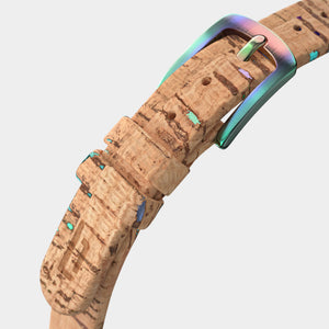 - Pasek z wegańskiej skóry papierowej, wykonany z celulozy, lateksu i korka, jest wygodny, trwały i można go szybko wymienić dzięki mechanizmowi szybkiego odpinania.