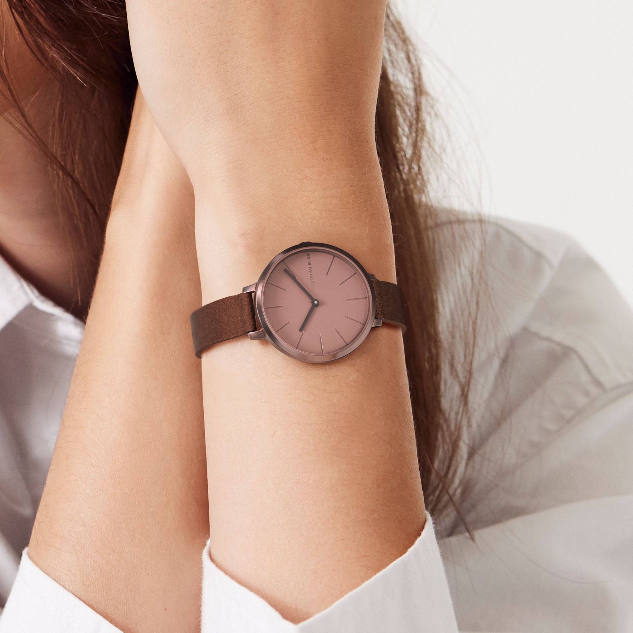 • Monochromatyczny minimalizm: Szczotkowana koperta 30 mm i matowa tarcza zostały utrzymane w ciepłym, ziemistym odcieniu, tworząc spójną i elegancką estetykę.